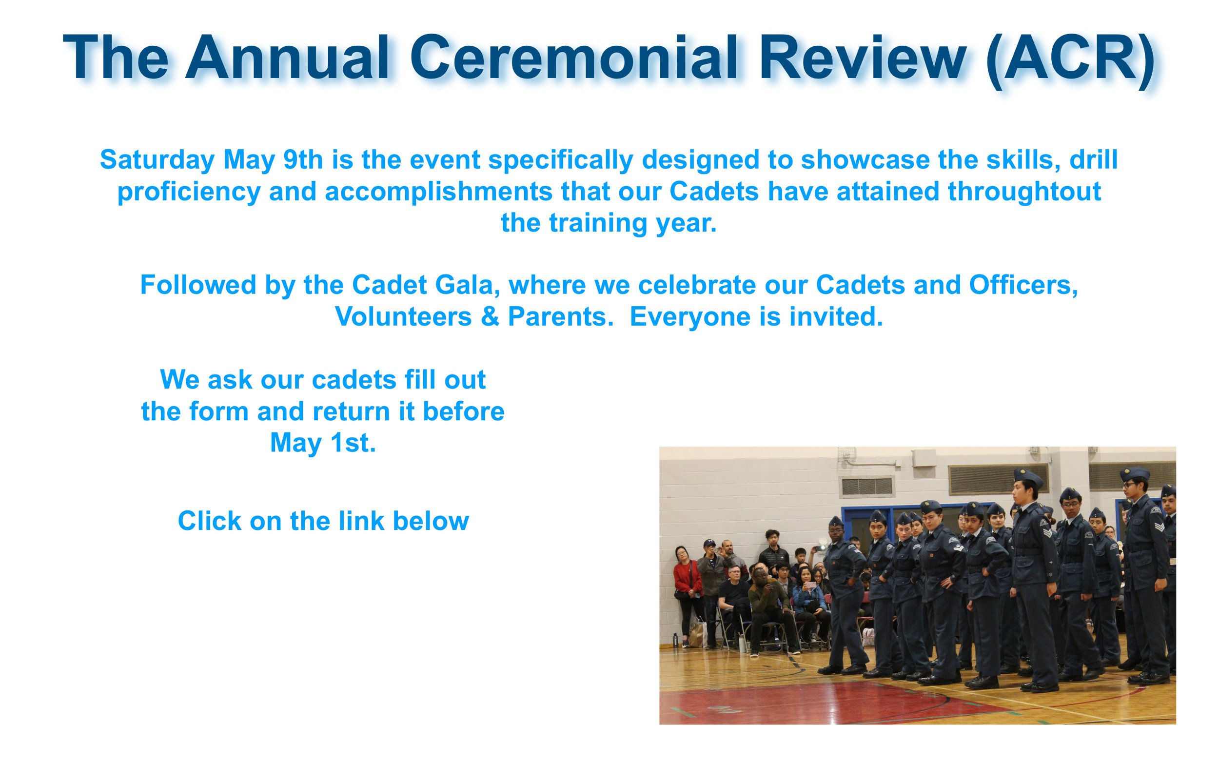 Direct any questions to 2Lt Prasad (Aditya.Prasad@cadets.gc.ca)